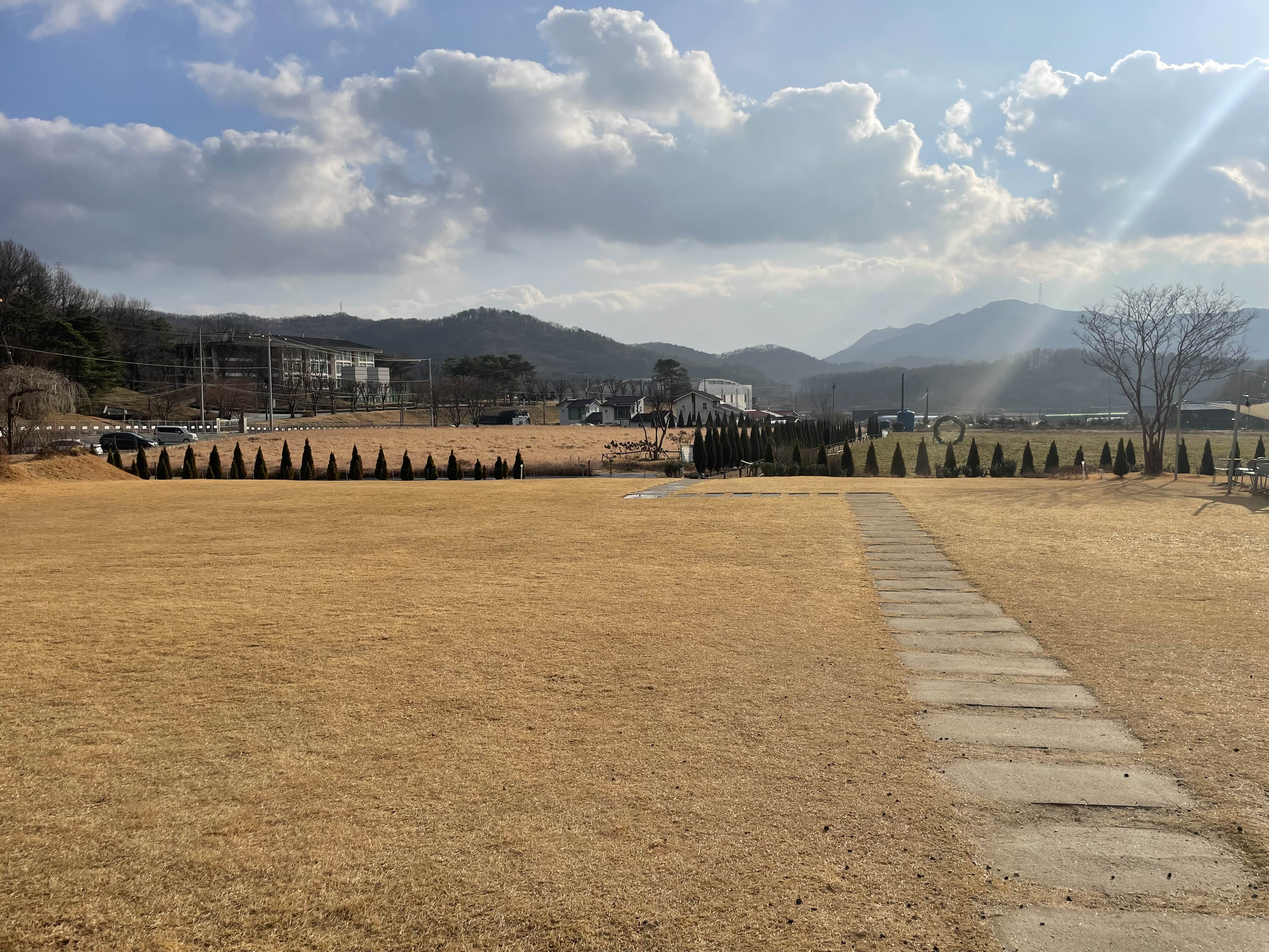 카페 지새울은 앞에 마당이 넓게 펼쳐져있다는 장점이 있어요! 아이들이 뛰어놀기에 좋아요 :-)