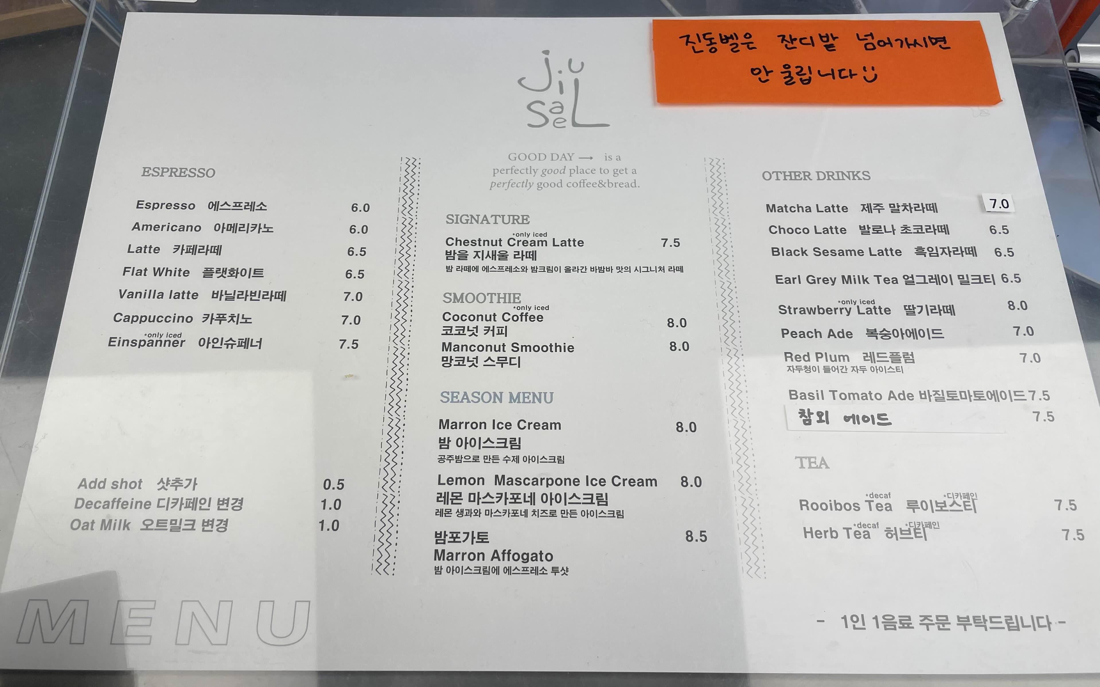 - 커피는 디카페인으로 변경 가능해요 :-)